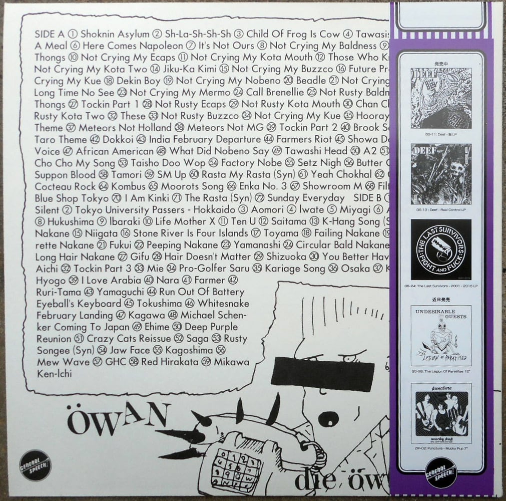 当時の国内外の音楽状況や世相、関西ローカル・ネタがてんこ盛りなので完全に理解するのは難しいのですが、グラインドコアなぞ影も形も存在しなかった時代に高校生がふざけながら、その雛型をいとも簡単に生み出し、かつ秀逸な構成力で展開した事実に驚嘆させられます。